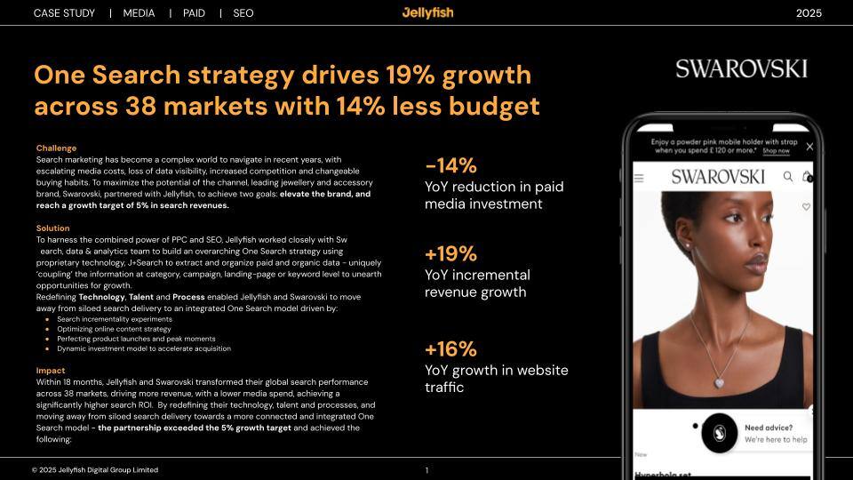 스와로브스키와 젤리피쉬 코리아는 SEO와 PPC를 통합한 강력한 원 서치 전략을 실행했습니다.